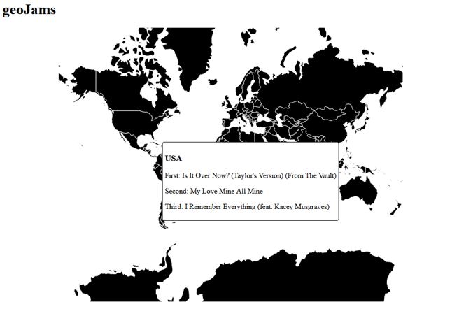Interactive map: Interactive map that displays countries and allows user to click on a country and see the country’s trending songs